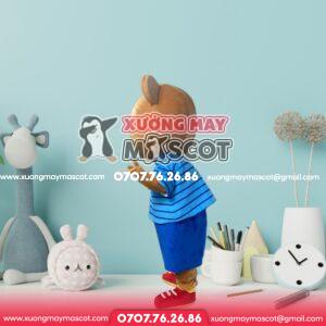 MASCOT GẤU NÂU MẶC ÁO KẺ