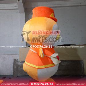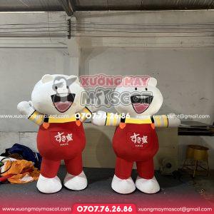 - Chất liệu: Hàng bông: tạo hình bằng khung mút xốp để định hình mascot, hàng hơi: định hình bằng hơi. Vải được may bằng vải velboa nhung, các phụ kiện được may tỉ mỉ và cẩn thận để sản phẩm hoàn thiện hoàn hảo nhất. Các bộ phận như tay, tai, mũi,… được đính thủ công bởi các thợ may chuyên nghiệp.