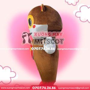 - Chất liệu: Hàng bông: tạo hình bằng khung mút xốp để định hình mascot, hàng hơi: định hình bằng hơi. Vải được may bằng vải velboa nhung, các phụ kiện được may tỉ mỉ và cẩn thận để sản phẩm hoàn thiện hoàn hảo nhất. Các bộ phận như tay, tai, mũi,… được đính thủ công bởi các thợ may chuyên nghiệp.