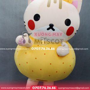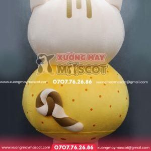 - Chất liệu: Hàng bông: tạo hình bằng khung mút xốp để định hình mascot, hàng hơi: định hình bằng hơi. Vải được may bằng vải velboa nhung, các phụ kiện được may tỉ mỉ và cẩn thận để sản phẩm hoàn thiện hoàn hảo nhất. Các bộ phận như tay, tai, mũi,… được đính thủ công bởi các thợ may chuyên nghiệp.