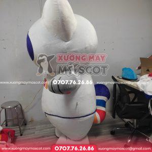 - Chất liệu: Hàng bông: tạo hình bằng khung mút xốp để định hình mascot, hàng hơi: định hình bằng hơi. Vải được may bằng vải velboa nhung, các phụ kiện được may tỉ mỉ và cẩn thận để sản phẩm hoàn thiện hoàn hảo nhất. Các bộ phận như tay, tai, mũi,… được đính thủ công bởi các thợ may chuyên nghiệp.