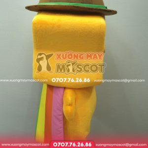 - Chất liệu: Hàng bông: tạo hình bằng khung mút xốp để định hình mascot, hàng hơi: định hình bằng hơi. Vải được may bằng vải velboa nhung, các phụ kiện được may tỉ mỉ và cẩn thận để sản phẩm hoàn thiện hoàn hảo nhất. Các bộ phận như tay, tai, mũi,… được đính thủ công bởi các thợ may chuyên nghiệp.