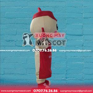 - Chất liệu: Hàng bông: tạo hình bằng khung mút xốp để định hình mascot, hàng hơi: định hình bằng hơi. Vải được may bằng vải velboa nhung, các phụ kiện được may tỉ mỉ và cẩn thận để sản phẩm hoàn thiện hoàn hảo nhất. Các bộ phận như tay, tai, mũi,… được đính thủ công bởi các thợ may chuyên nghiệp.