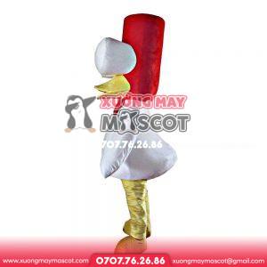 Mascot vịt mắt to gây ấn tượng với người bằng cặp mắt to và độc đáo. Trang trí chiếc nơ đỏ tạo vẻ thanh lịch cho chú vịt. Sử dụng mascot vịt sẽ đem lại sự chú ý của khán giả hơn với nhãn hàng mà bạn cần quảng cáo.